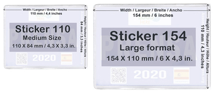 choisir pour chaque vignette supplémentaire commandée sa taille et le mode de fixation: autocollante (plastique souple) ou non autocollante (plastique semi-rigide).